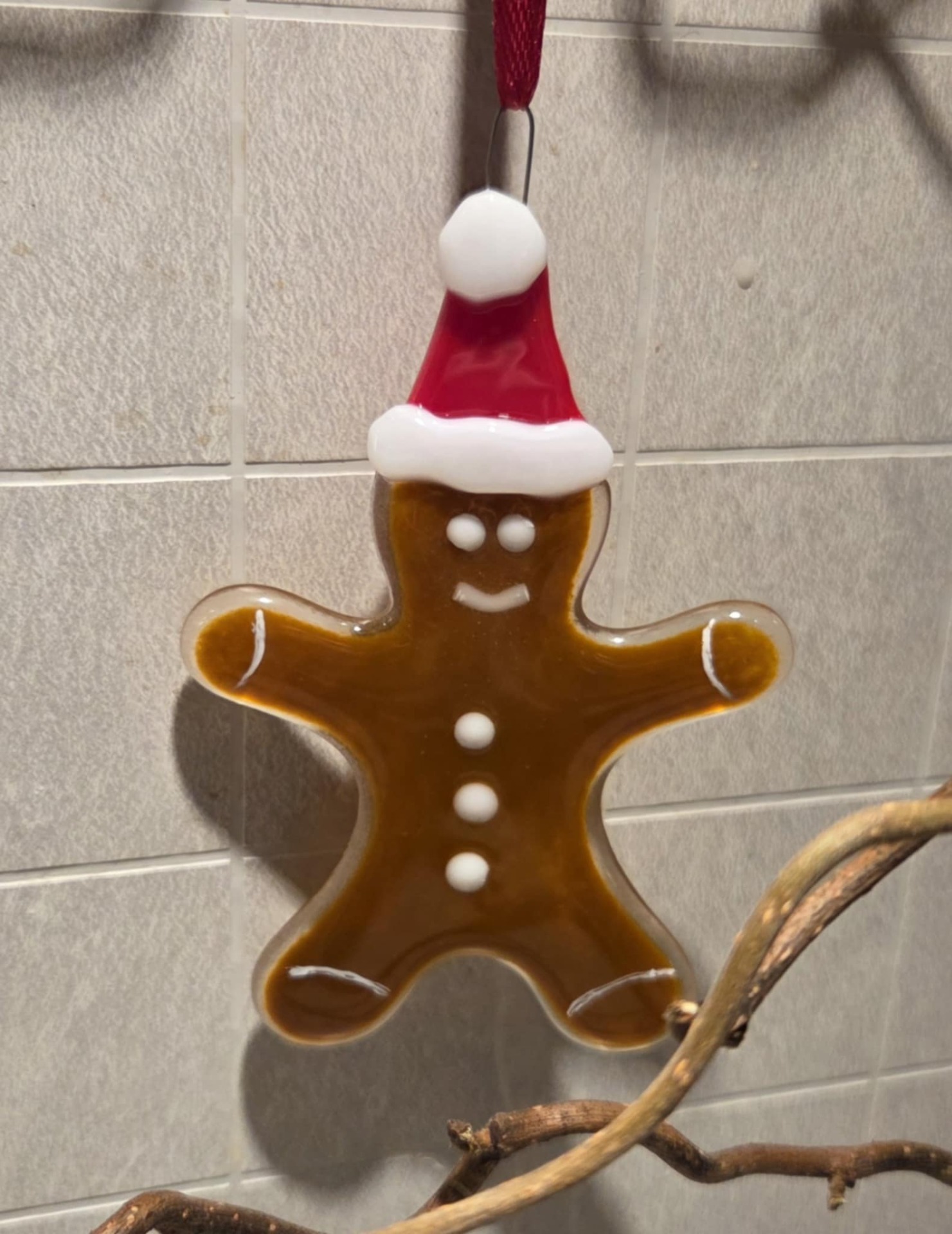 Pepperkakemann som kan henges på juletreet, eller på en Vrihasselgren.