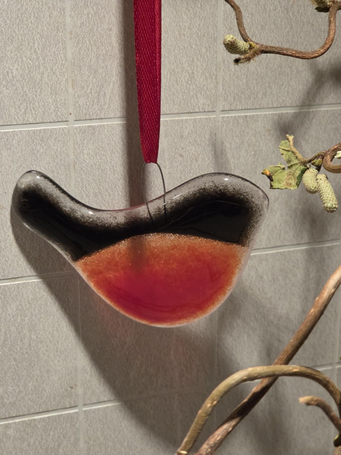 Dompap som kan henges på juletreet, eller på en Vrihasselgren.